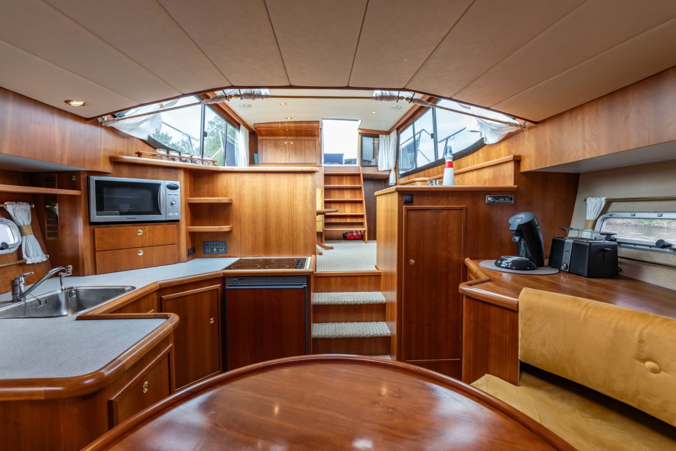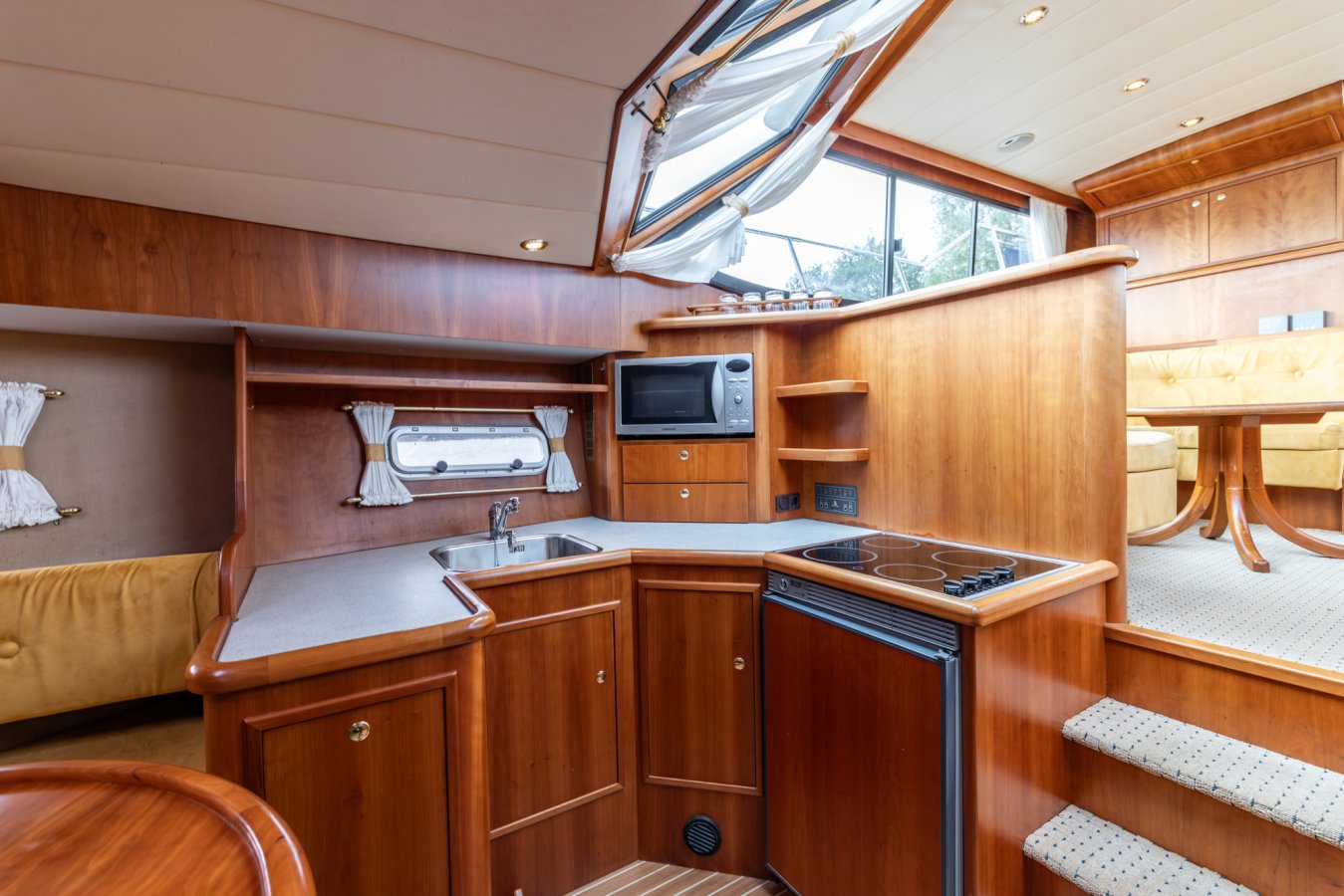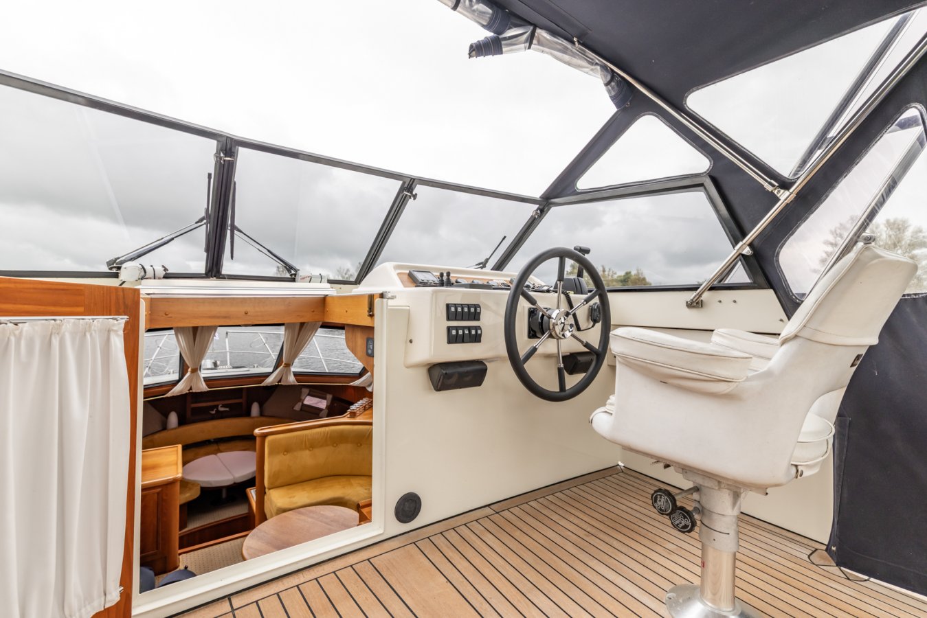 Diese solide gebaute Motoryacht aus Stahl ist für ihre guten Fahreigenschaften bekannt, die sie sowohl für längere Reisen als auch für entspannte Wochenendausflüge ideal machen. Der Grundriss bietet einen geräumigen Salon, ein komfortables Schlafzimmer und zwei zusätzliche Schlafplätze. Dank ihres zeitlosen Aussehens und der gut durchdachten Innenausstattung verbindet diese Boarncruiser Zuverlässigkeit mit angenehmem und unbeschwertem Fahrkomfort.