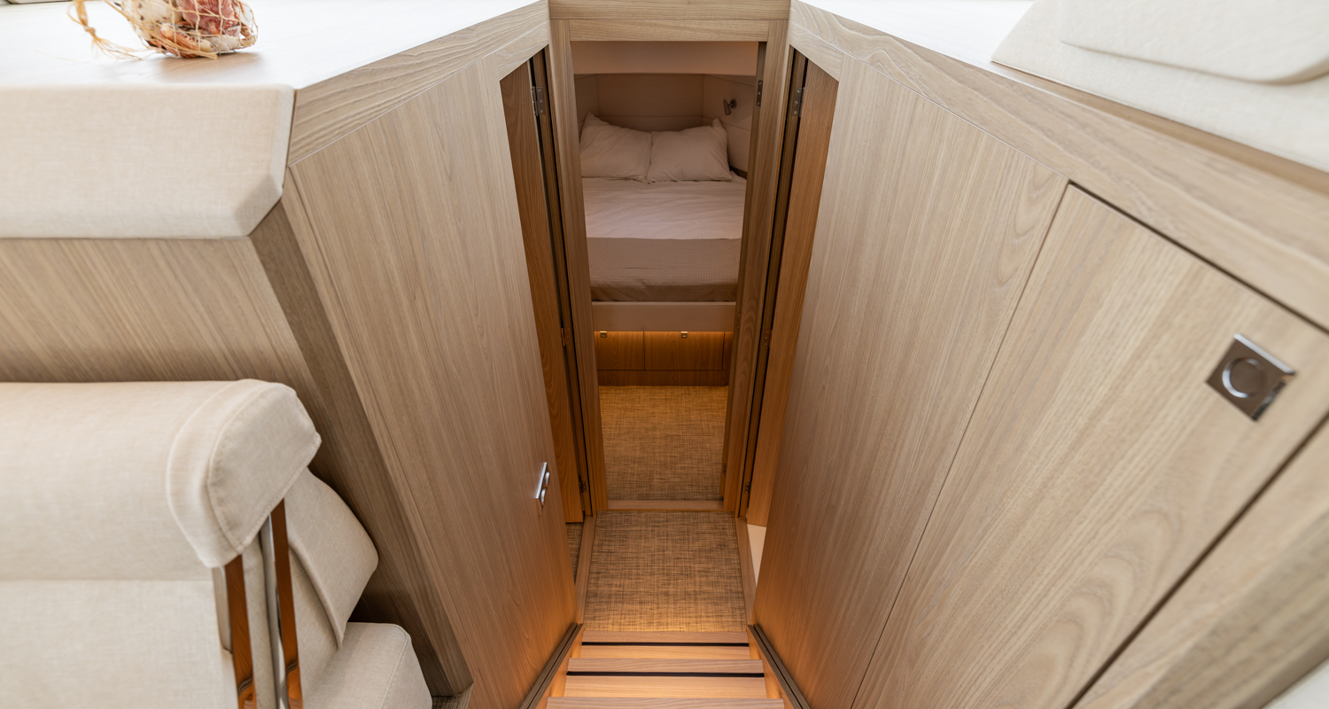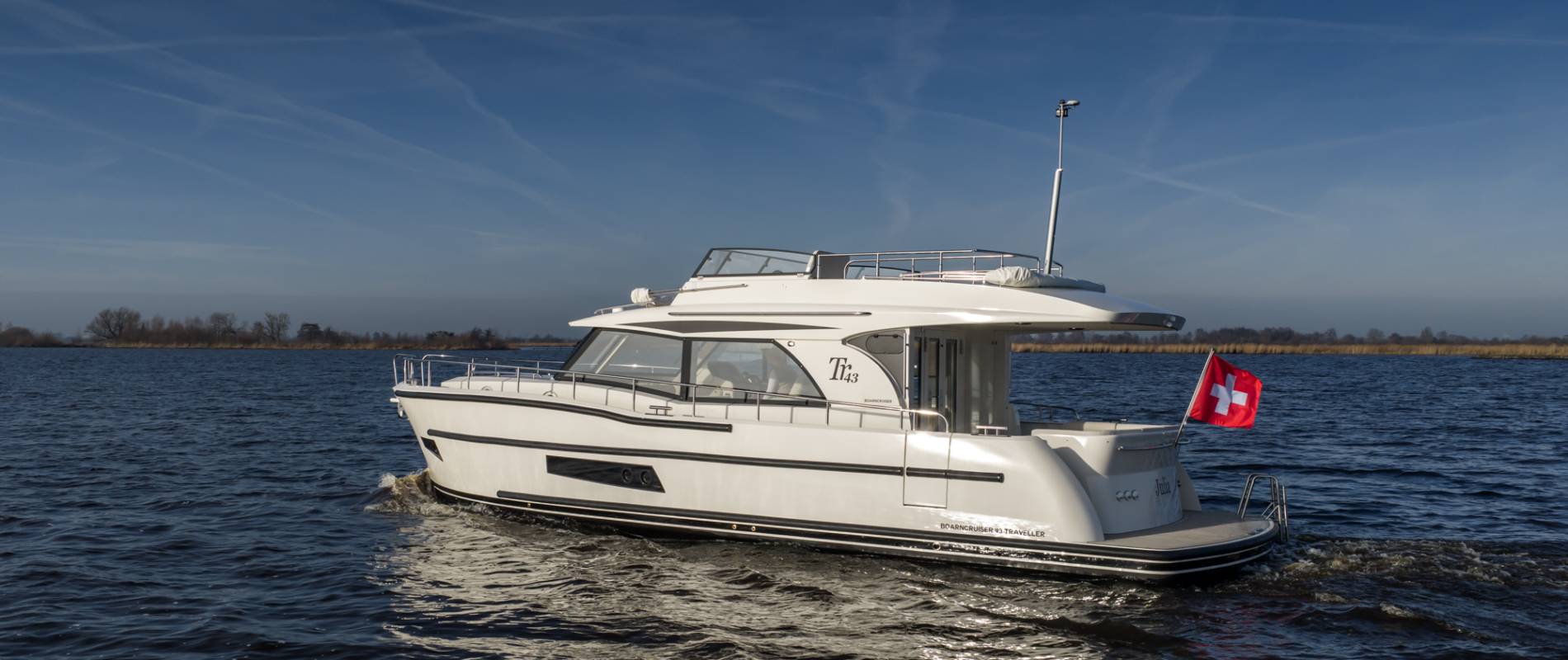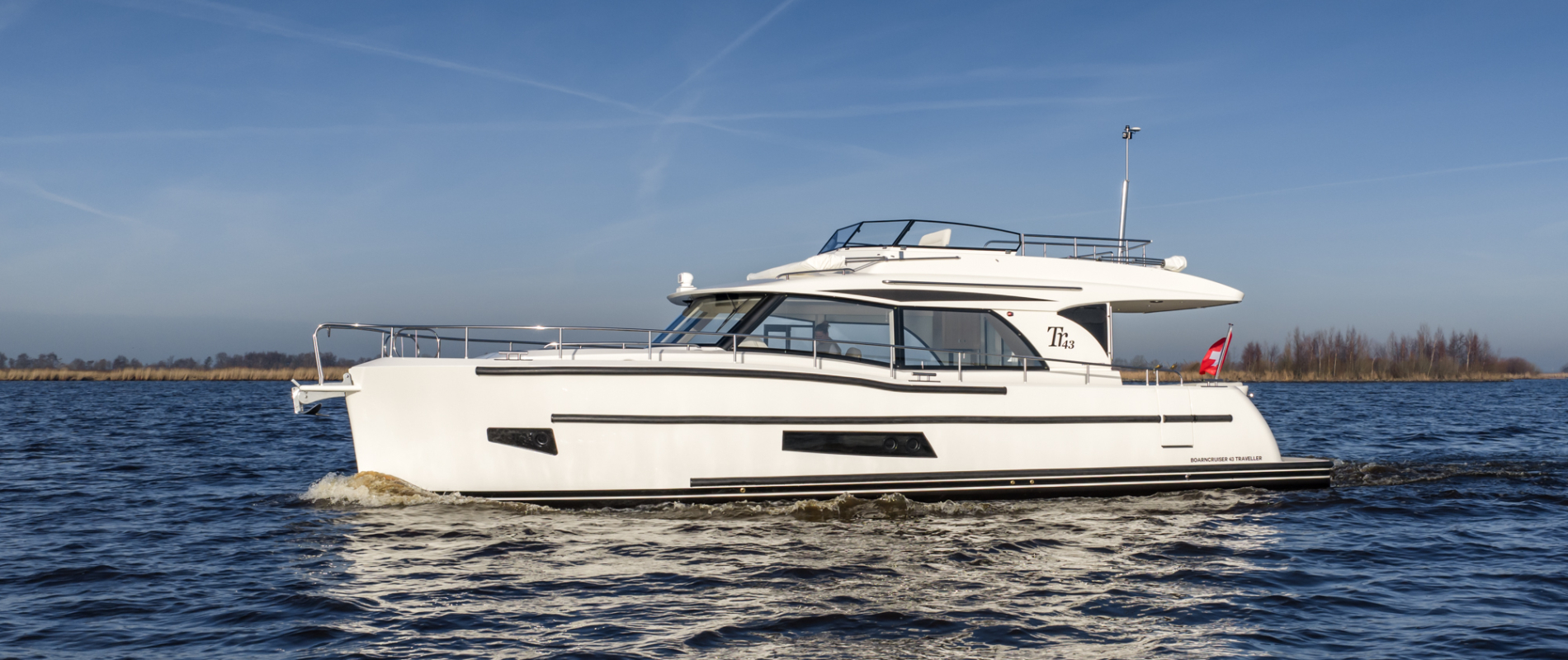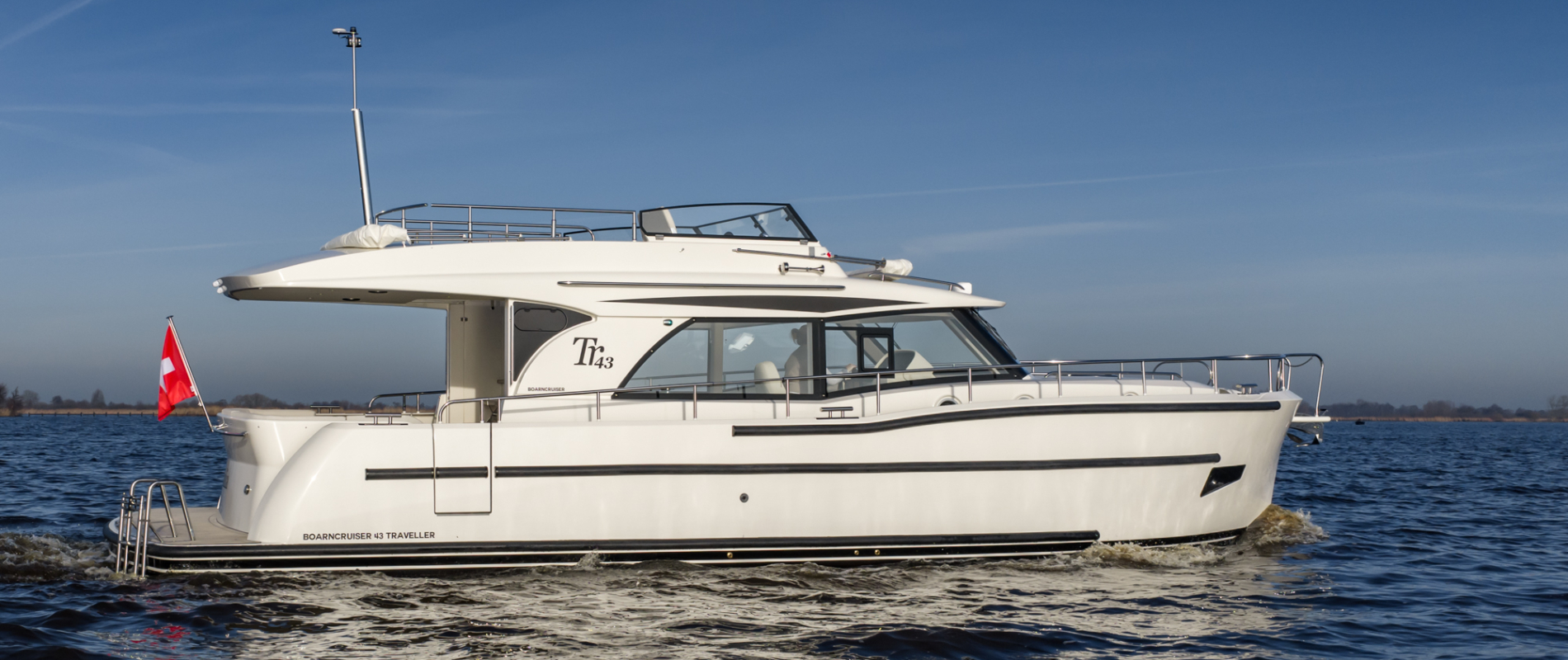 The Boarncruiser 43 Traveller has it all, such as a very well thought-out lowerdeck with two bedrooms and one bathroom with separate sanitary areas. In addition to the DNA of all Travellers, the 43′ has an innovative folding cockpit bench that gives access to very large deck storage benches.