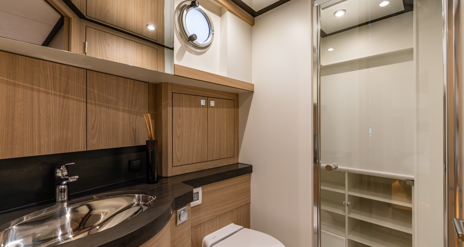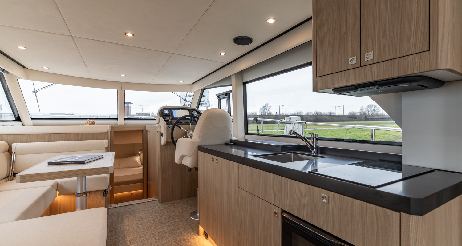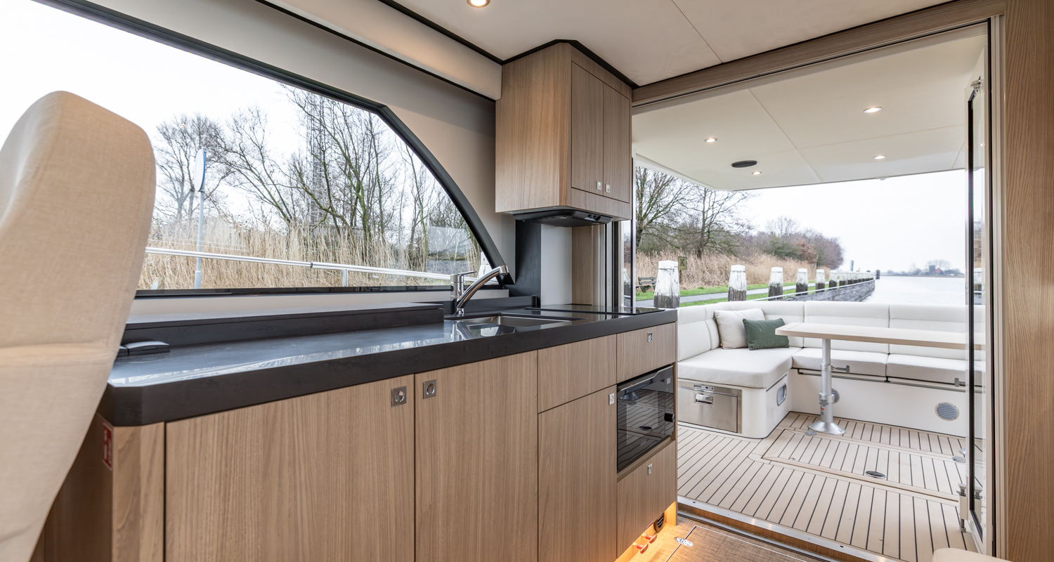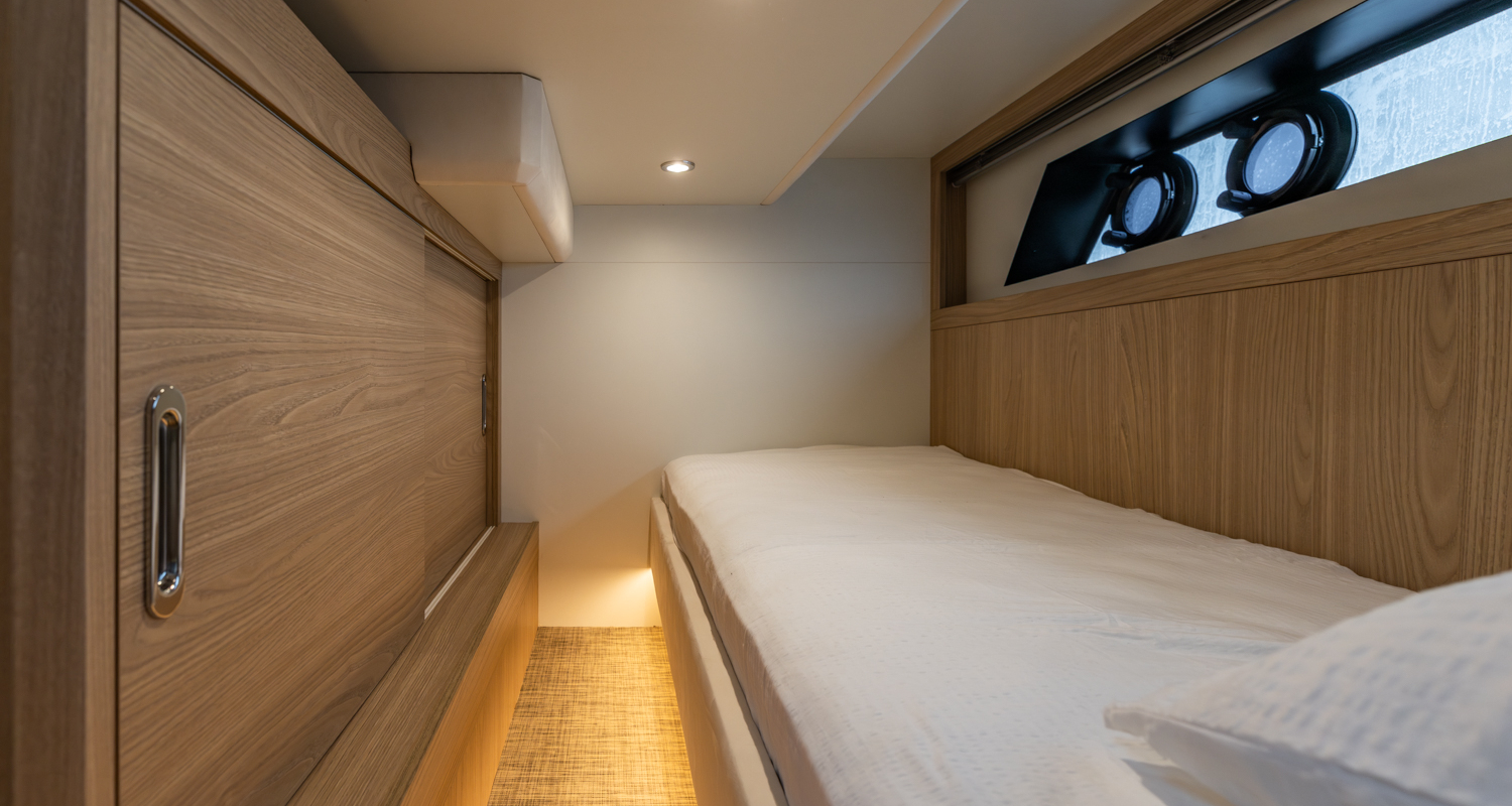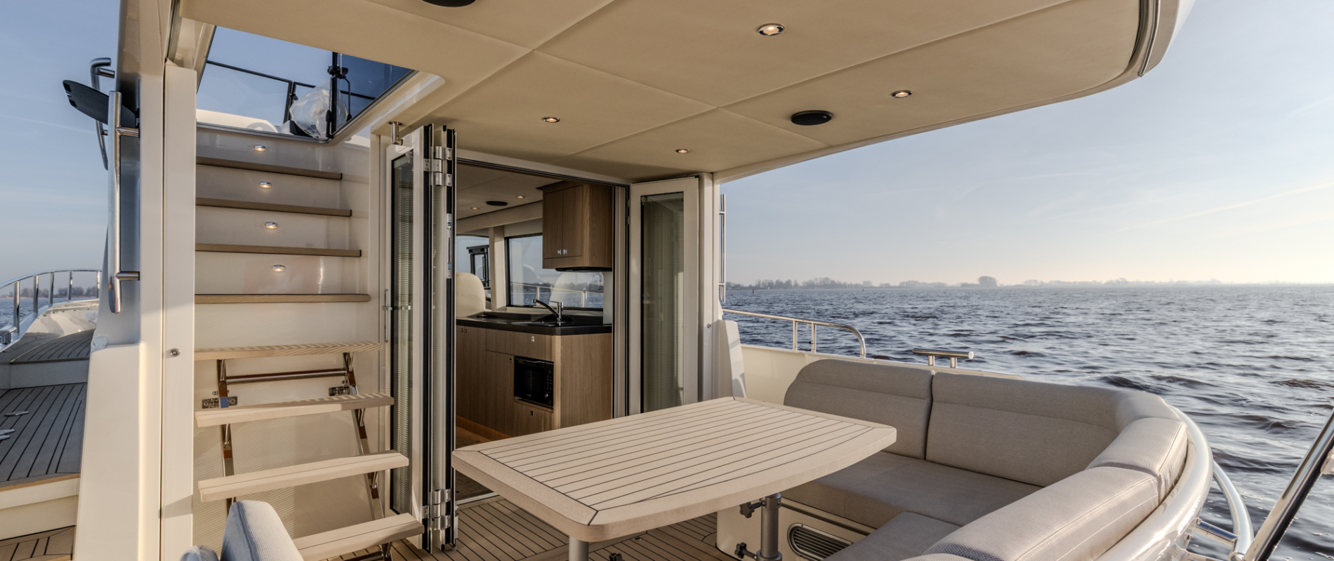 The Boarncruiser 43 Traveller has it all, such as a very well thought-out lowerdeck with two bedrooms and one bathroom with separate sanitary areas. In addition to the DNA of all Travellers, the 43′ has an innovative folding cockpit bench that gives access to very large deck storage benches.