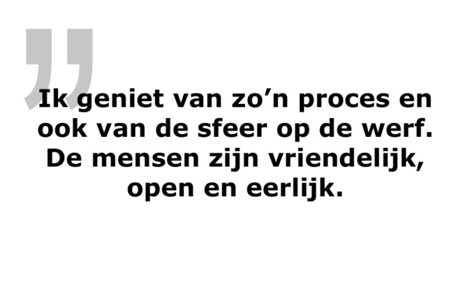 gehuurd en zijn toch mooi weggeweest.” Romke was nauw betrokken bij de bouw. Als Fries volgde hij wekelijks de vorderingen. “Ik keek regelmatig even hoe ver het was en werd middels foto’s en film door Wies en Tjerk op de hoogte gehouden. Alles gebeurde in Friesland en ik houd ervan dat vakmensen in de buurt samen een prachtig product maken. Korte ketens van bedrijven die elkaars taal spreken.” Een wachttijd van anderhalf jaar lijkt lang, maar Romke is daar niet