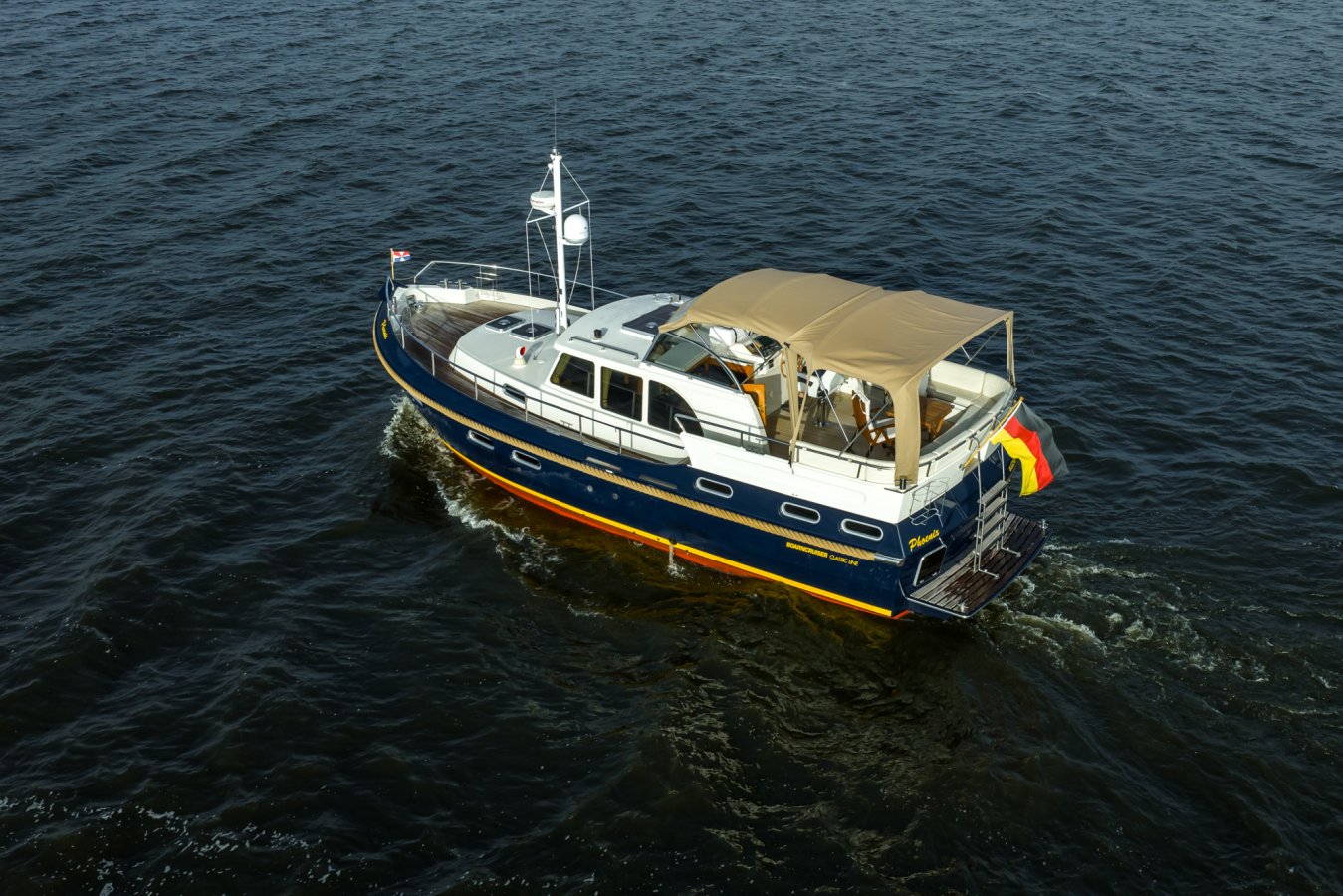 De uitstekend onderhouden Boarncruiser 43 Classic Line Aft Cabin combineert tijdloze elegantie met moderne techniek en uitstekende vaareigenschappen.