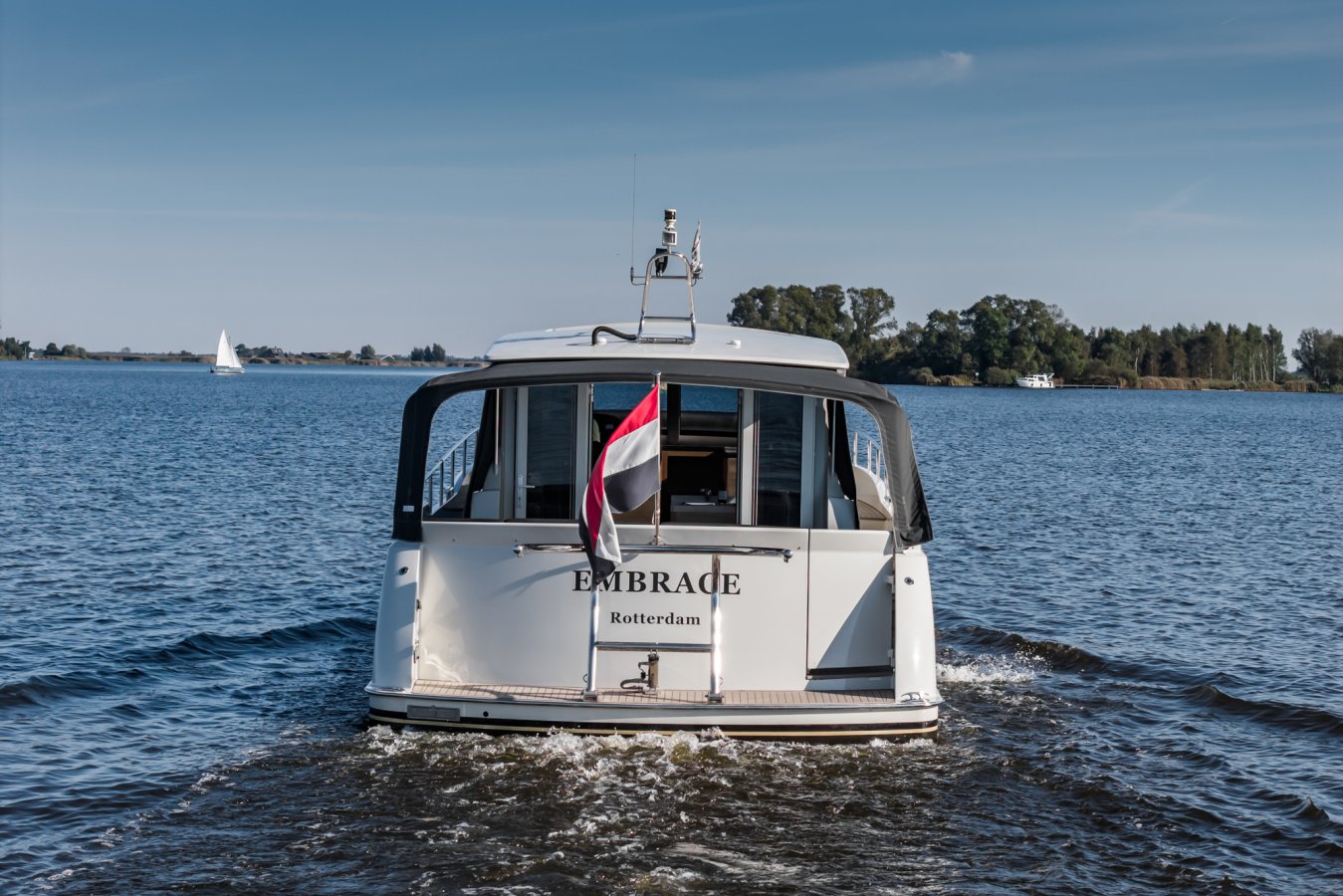 Deze prachtig modern gelijnde Boarncruiser 1200 Elegance "Embrace" wordt te koop aangeboden door de 2e eigenaar is voorzien van vele interesante opties zoals een boeg- en hekschroef, groot schuifdak in salon, generator, PUR gespoten isolatie, dubbel glas, centrale verwarming en een grote kuiptent! Door de grote salon en ruime open kuip (alles gelijkvloers), is dit een heerlijk schip om comfortabel lange reizen door Europa te maken. Een schip dat u beslist moet hebben gezien!