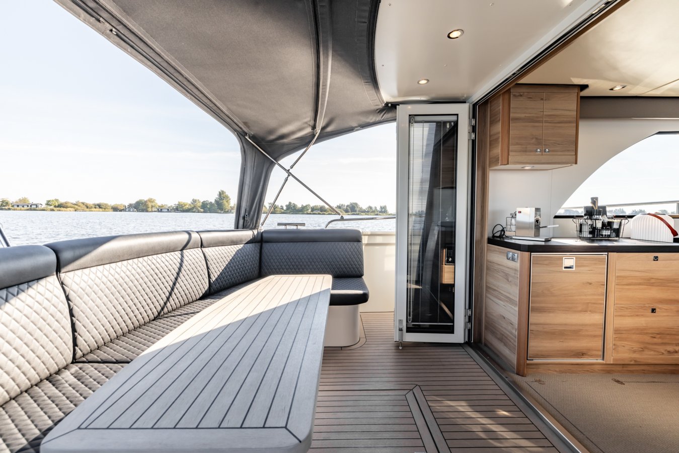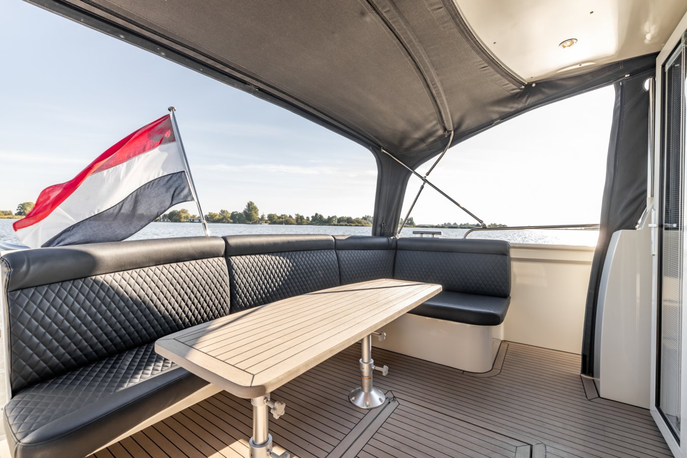 2022: Kuiptent volledig over de kuip, ramen en deuren voorzien van ritsen. Om te bouwen tot bimini kap.