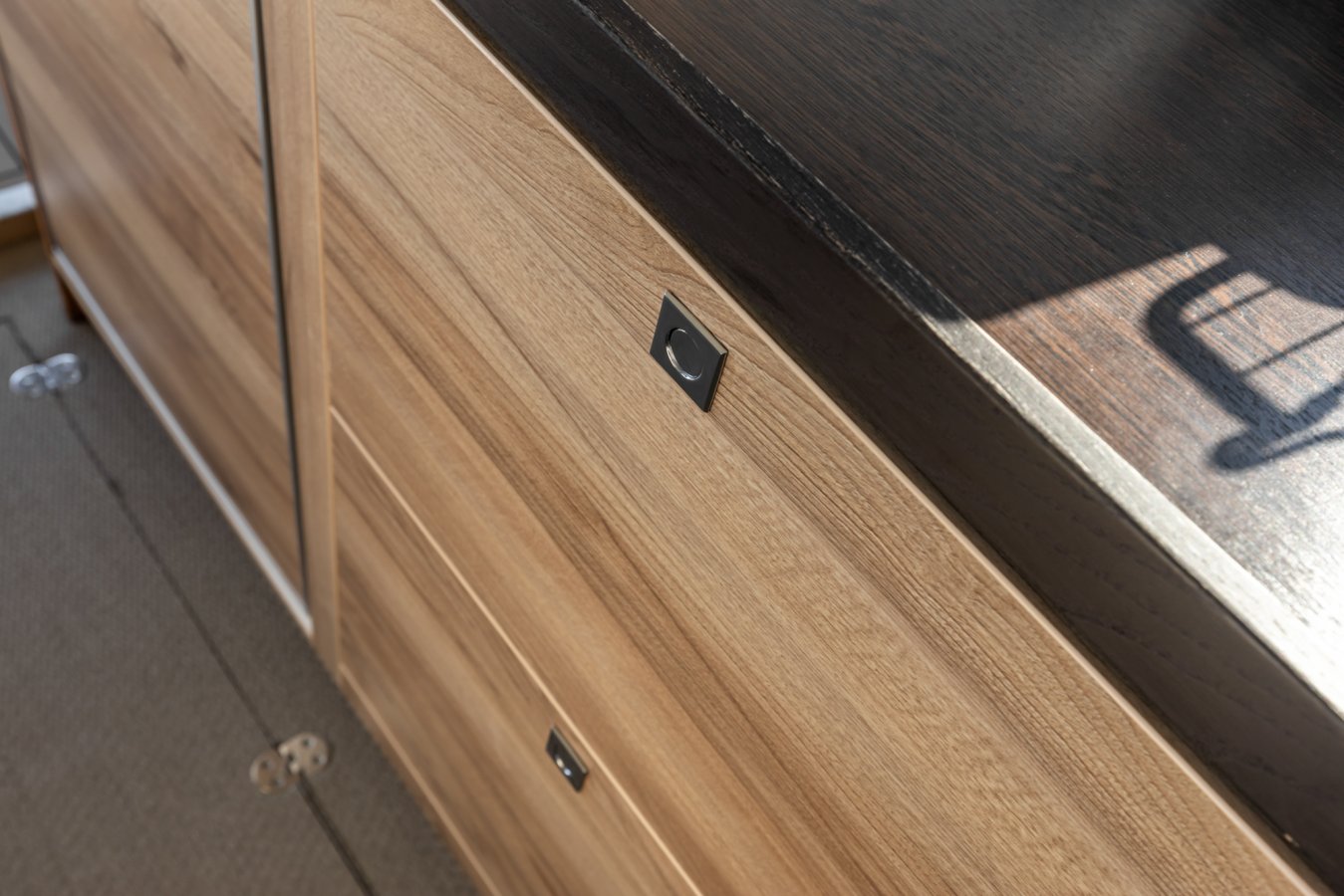 Deco Wenge en Walnoot, salonvloer; HPL teakvloer en holly, luxe alcantara bekleding
