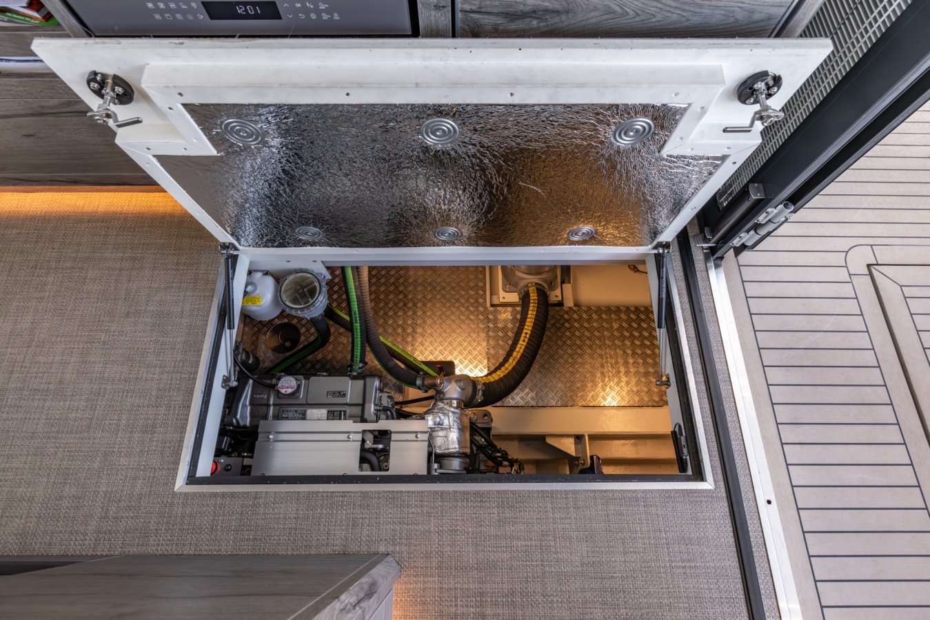 - Saloon table leg electrically equipped (possibility of extra bed)