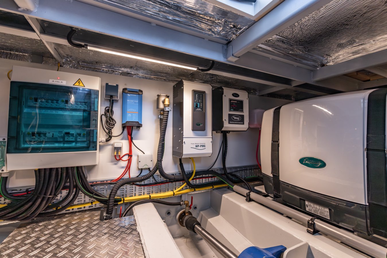 Batteries maintenance-free, divided into two battery groups, starter grid 140 Ah, board grid 600 Ah, board grid equipped with remote main switch