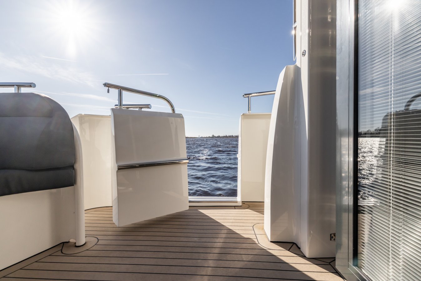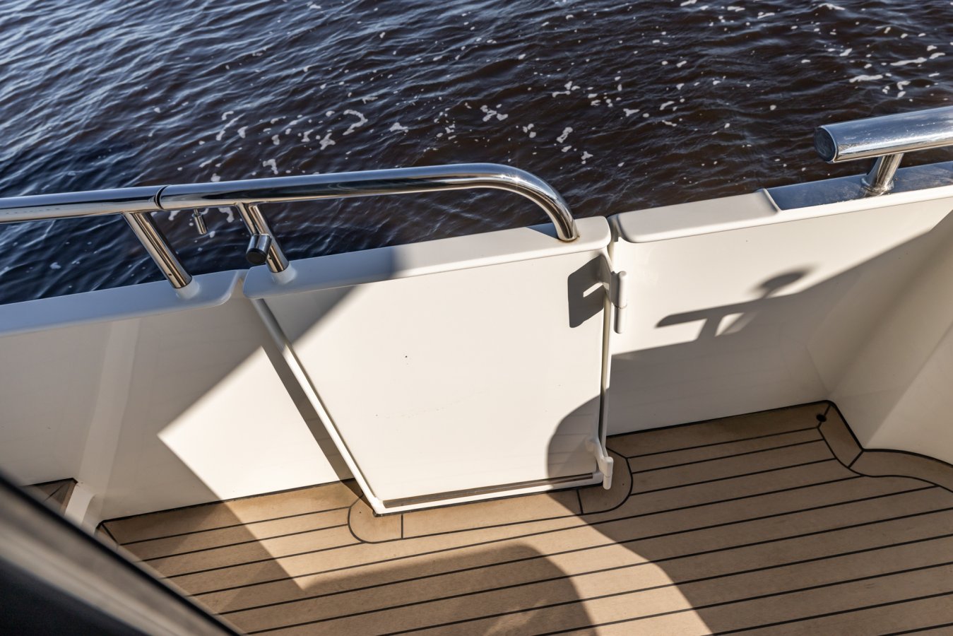 - Large bathing platform with synthetic teak deck and attractive stainless steel rubbing strip