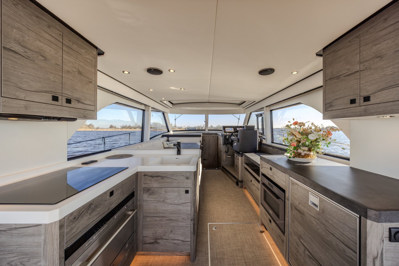 Lounge and cockpit on 1 level, owner's cabin at the front, guest cabin with 2 single beds standard on BB side. Spacious wet room with large shower on SB side.